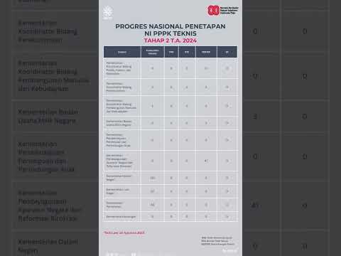 Cek progres penetapan Nomor Induk PPPK 2024 Tahap I dan II di lingkup Instansi Pemerintah Pusat atau vertikal yang masih terus berjalan prosesnya hingga hari ini. Untuk perkembangan di lingkup Instansi Pemerintah Daerah dapat dicek pada update masing-masing Kantor Regional BKN sesuai wilayah kerjanya. 🙌