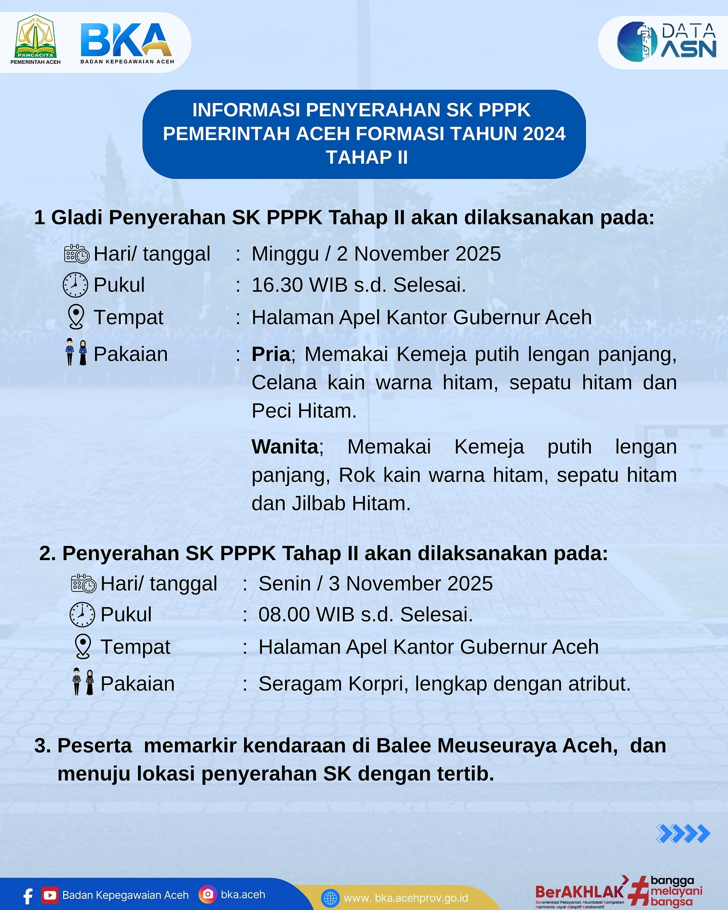 INFORMASI PENYERAHAN SK PPPK PEMERINTAH ACEH FORMASI TAHUN 2024 TAHAP II