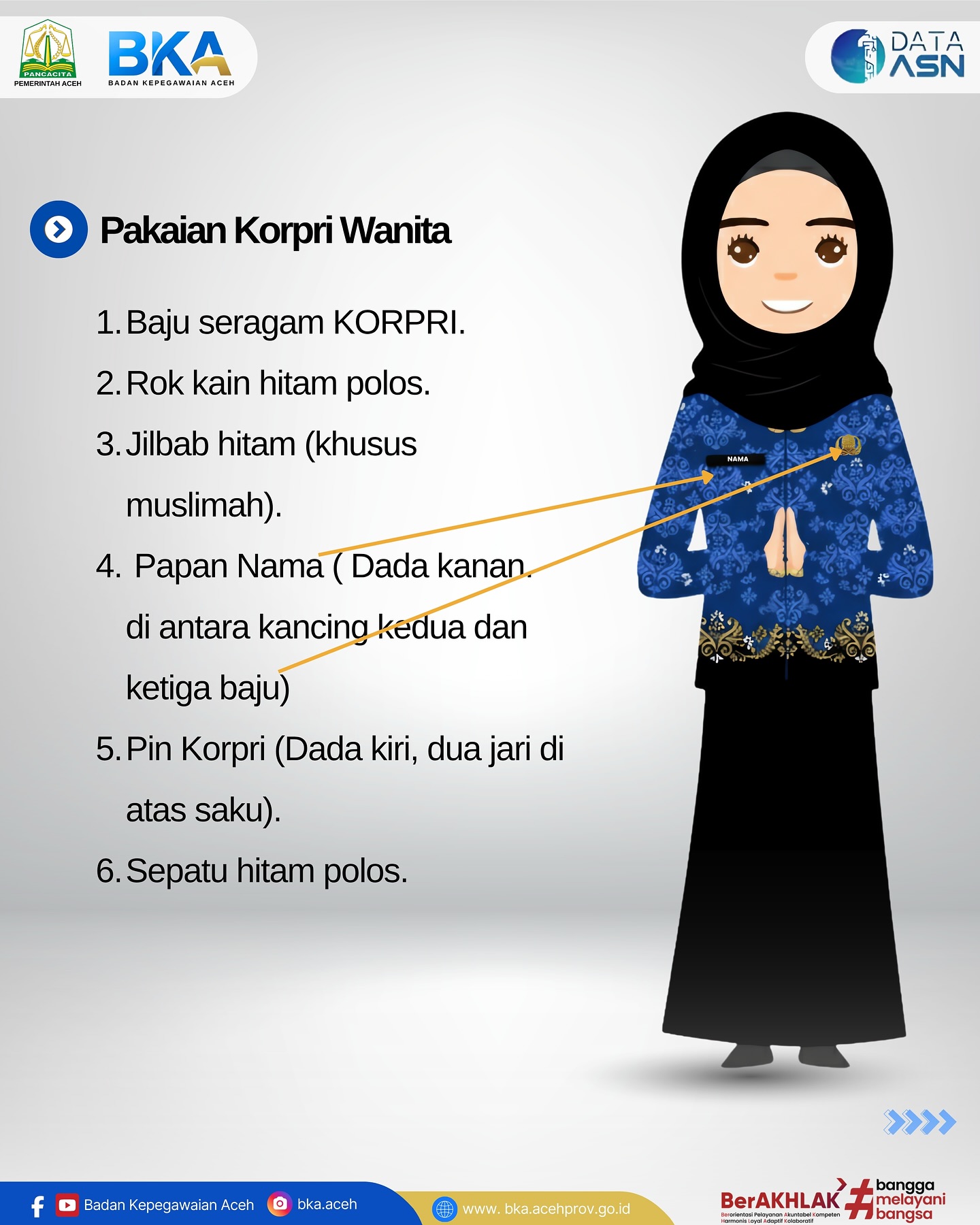 Pakaian	         : Seragam Korpri, lengkap dengan atribut.